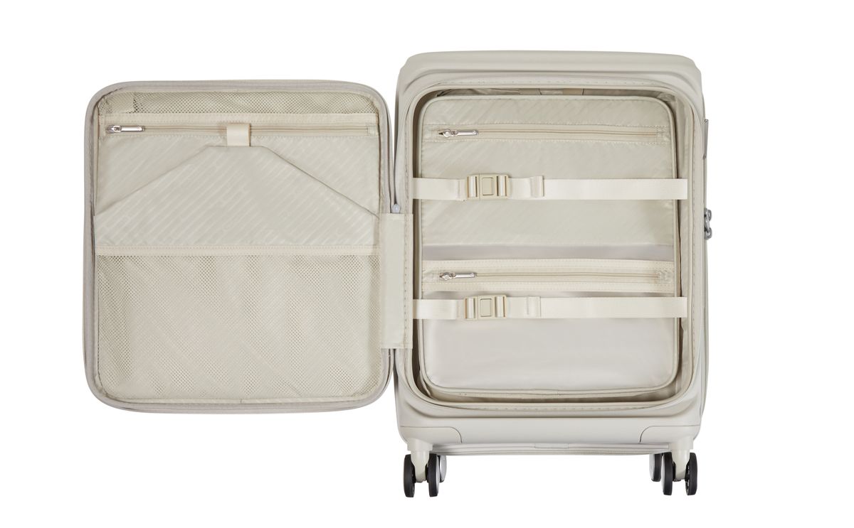 Paralux HS combina un diseño minimalista con un acceso máximo y una modularidad de embalaje. Su innovadora funcionalidad se complementa con capas exteriores, cremalleras y forro interior fabricados con materiales reciclados. Paralux HS está fabricado con polipropileno ligero y resistente a los arañazos. Doble acceso: acceso rápido y sencillo al compartimento principal a través del bolsillo frontal o la abertura central. Interior totalmente equipado: bolsas organizadoras, divisor fijo, divisor flotante con bolsillo impermeable y correas de embalaje. Al menos el 50 % de la capa exterior está fabricado con polipropileno reciclado. El 100 % del tubo de aluminio del asa telescópica está fabricado con aluminio reciclado. El 100 % de la cremallera, el forro interior, la malla y las correas están fabricados con plástico PET reciclado.